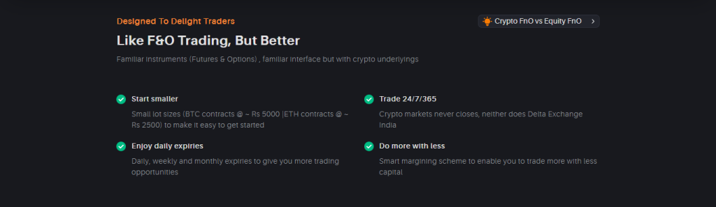 - Smaller lots: Easy to get started with BTC contracts at a minimum of Rs 5000 and ETH contracts at Rs 2500.